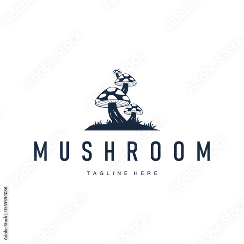 mushroom logo with minimalist black silhouette concept as a symbol of natural plants and food ingredients mushroom icon template for product brand, plantation, businesses, garden, farm