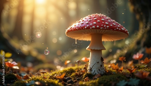 Mushroom Situated in Magical Forest Setting.