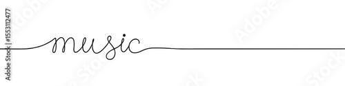 Music inscription continuous one line drawing with word. Minimalistic drawing of phrase illustration.