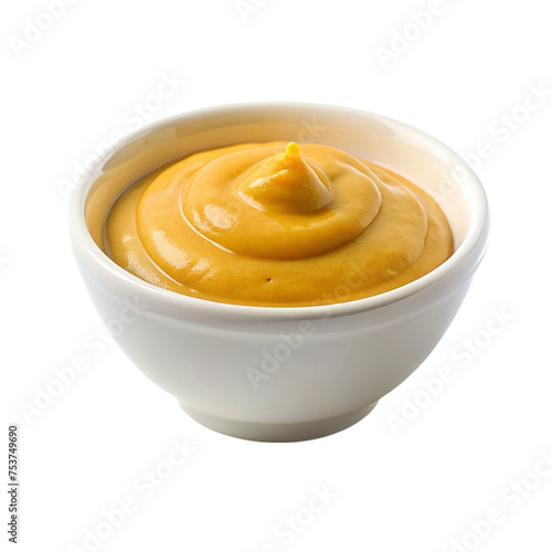 Mustard in white bowl. isolated on transparent background.