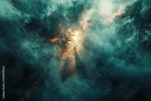 Mysterious clouds illuminated by sunlight create a surreal atmosphere in the sky at dusk