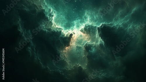 Mystical dark space with a faint, eerie green nebula
