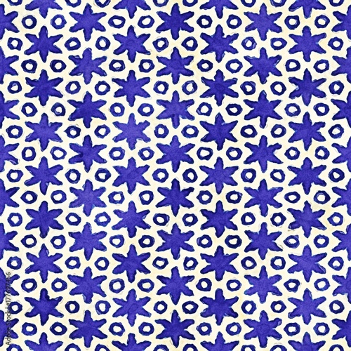 Native batik seamless watercolor artistic boho style colorful square pattern.