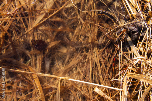 natural background last year's dry grass under the crust of ice