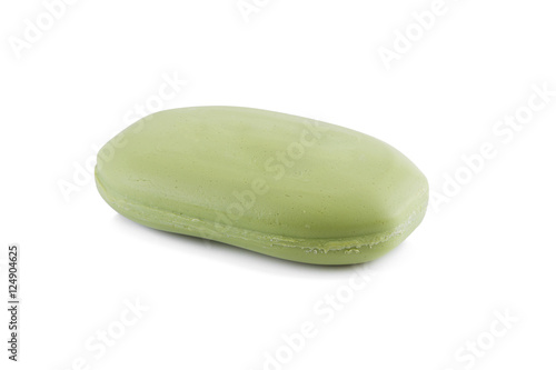 Natural green soap on white background.