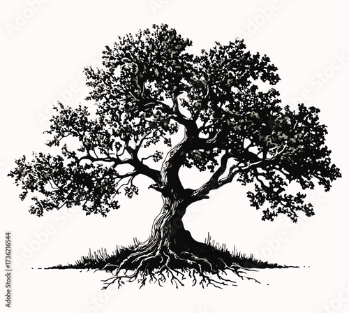 Natural Oak Tree Roots and Branch Silhouette Vector