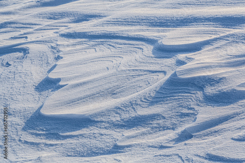 Natural patterns. Snow Paintings. Footprints on , drifts in the snow. Beautiful winter background. space for text. copy space. Natural patterns. Snow Paintings