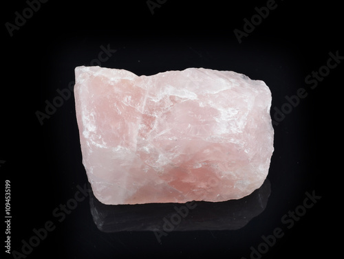 Natural pink quartz on a black background. Macro. Selective focus.