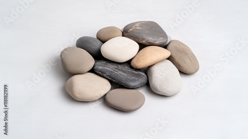 Natural stones collection studio setting photography minimalist background close-up view texture exploration