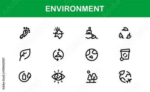 Nature and Environment Icons. Clean Line Art for Green Energy, Ecology, and Earth-Friendly Visuals