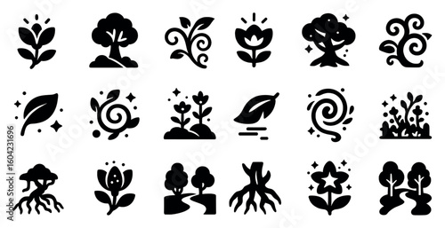 Nature and environment icons set – solid, filled, botanical and eco-friendly symbols