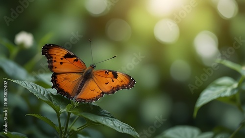 Nature view of beautiful orange butterfly on green nature blurred background in garden with copy space using as background insect, Generative AI