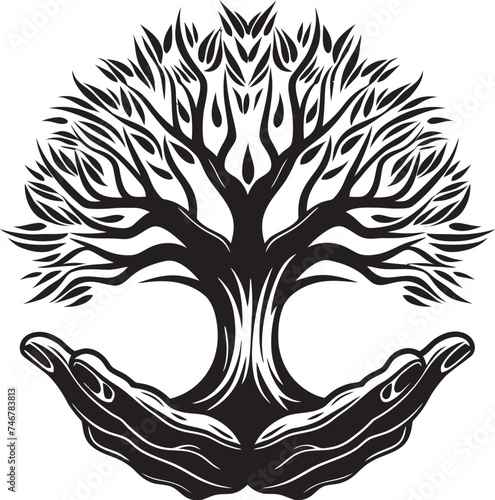 Natures Grasp Black Logo with Hands Holding a Vibrant Plant Vector Verdant Affection Stylish Living Plant Emblem in Hands Graphic