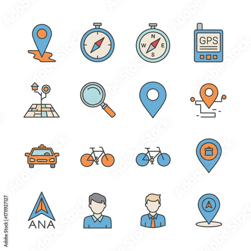 Navigation and Location Icons - A Set of Essential Symbols for Maps and Directions.