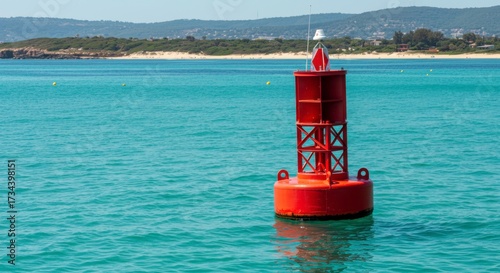 Navigational safety buoy in the Mediterranean sea off the coast of Sardinia