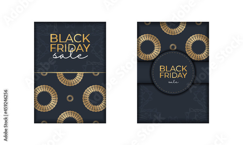 Navy blue black friday advertising template with greek gold pattern