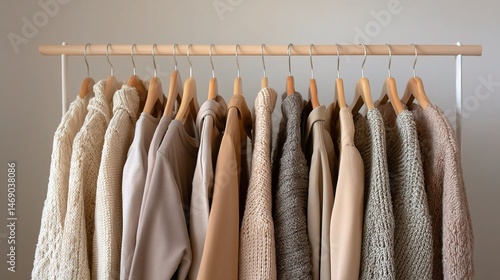 Neatly Arranged Capsule Wardrobe in Soft Neutral Tones
