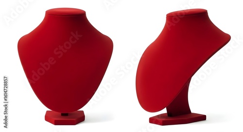 Necklace bust Jewelry display stand, isolated on white, red velvet