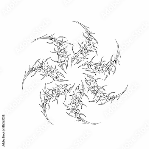 Neo tribal spiral emblem with sharp and intricate linework. Perfect for streetwear, stickers, and edgy digital or print designs. clean vector isolated on white background