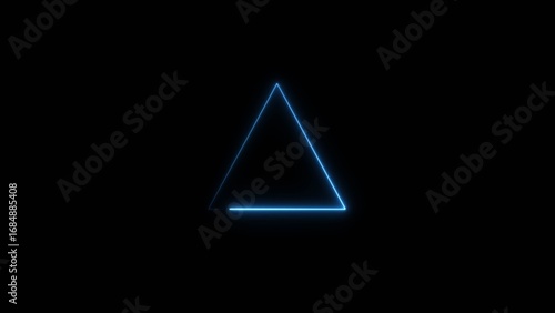 Neon bright geometric triangle cyan color 4k illustration on black background. neon line background 4k illustration.