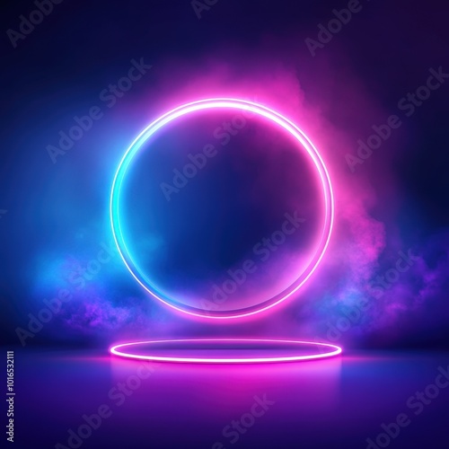 Neon Circle with Smoke Background for Product Display.