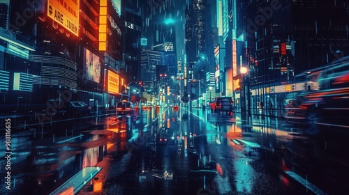 Neon Cityscape: A Vivid Nighttime Symphony