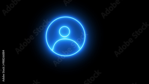 Neon contact icon red color glowing animation. Social network user Icon on black background . Glowing neon person sign, outline round avatar pictogram in vivid color.