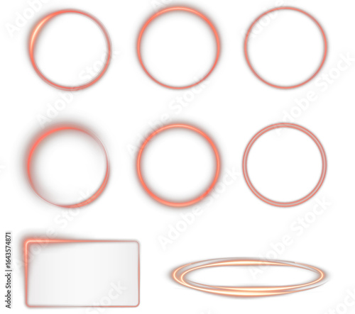 Neon, curve, light, colours, abstract PNG frames. This PNG Overlay on transparent background offers glowing red circles, bright rings, and modern light shapes perfect for tech, space.