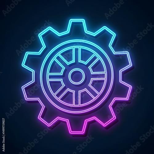 Neon Gear Icon, Futuristic Technology Symbol