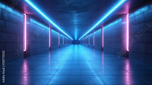 Neon Glow Illuminates Futuristic Corridor. AI Generated