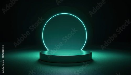 Neon Green Circle and Platform: Abstract Minimalist 3D Render