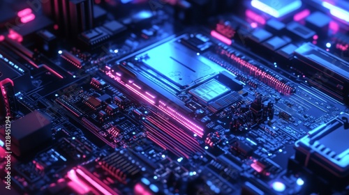 Neon Lit Circuit Board Technological Detail