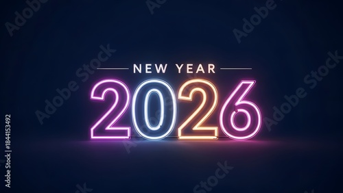 Neon new year 2026 typography with glowing effect on dark background