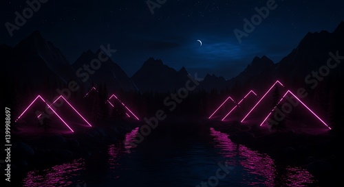 Neon Peaks & Still Waters AI Generated