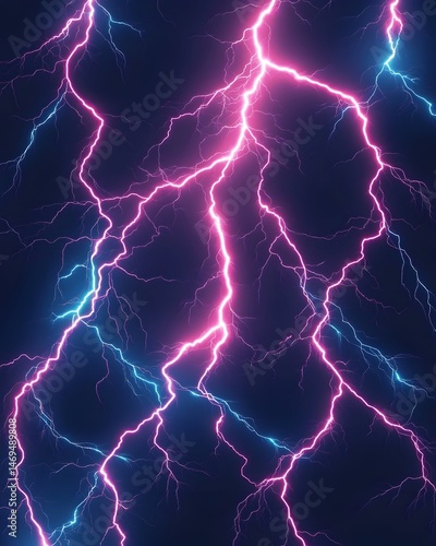 Neon pink and blue lightning bolts on dark background