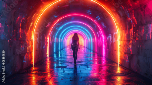 Neon Voyage: Journey Through a Futuristic Tech Tunnel