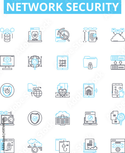Network security vector line icons set. Network, Security, Cyber, Intrusion, Firewall, Malware, Antivirus illustration outline concept symbols and signs