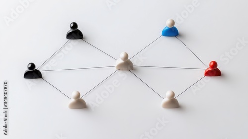 Networking connections among diverse figures abstract setting digital art minimalist design overhead view collaboration concept