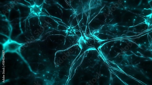 Neural Network: Glowing Teal Neuron Connections in Abstract Art