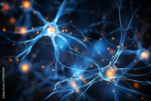 Neuron cells neural network under microscope neuro research science brain signal information transfer human neurology mind mental impulse biology anatomy microbiology intelligence connection system