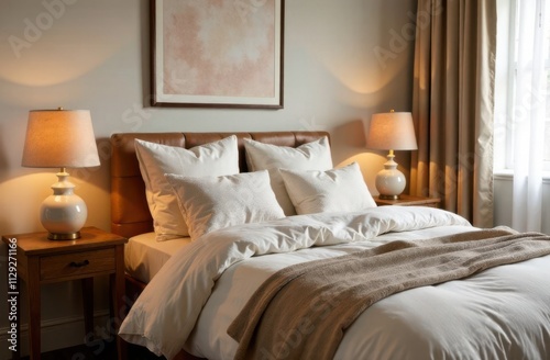 Neutral chenille bedding creates a cozy and elegant bedroom look.