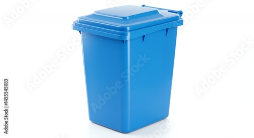 New Clean Bright Blue Residential Trash Bin with Closed Lid Isolated on White Background Representing Waste Management and Recycling Initiative