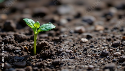 New Green Sprout Emerging from Rich Soil Under Soft Sunlight in Natural Environment