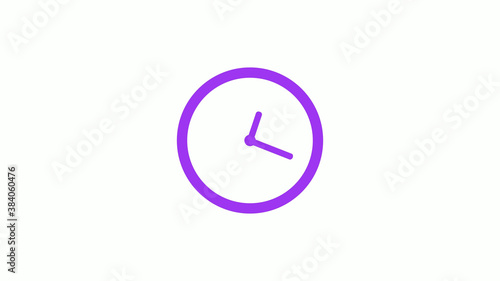 New purple color 12 hours counting down clock isolated on white background,clock icon
