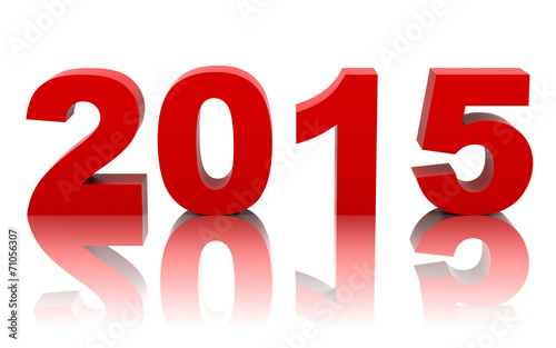 new year 2015 with reflection isolated on white background