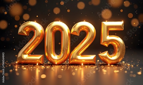New Year 2025 Celebration with Fireworks and Neon Lights Illustration, Generative Ai
