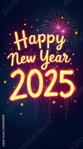 New Year banner 2025 with fireworks background, illustration