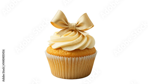 New Year Gold ribbon Cupcake on transparent PNG.