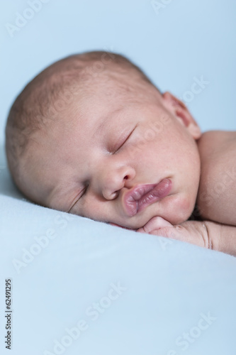 Newborn Baby in Bauchlage Kopf liegt seitlich