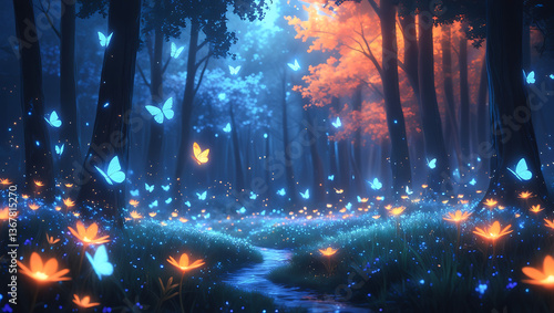 nice anime background of the misty forest at night, halloween